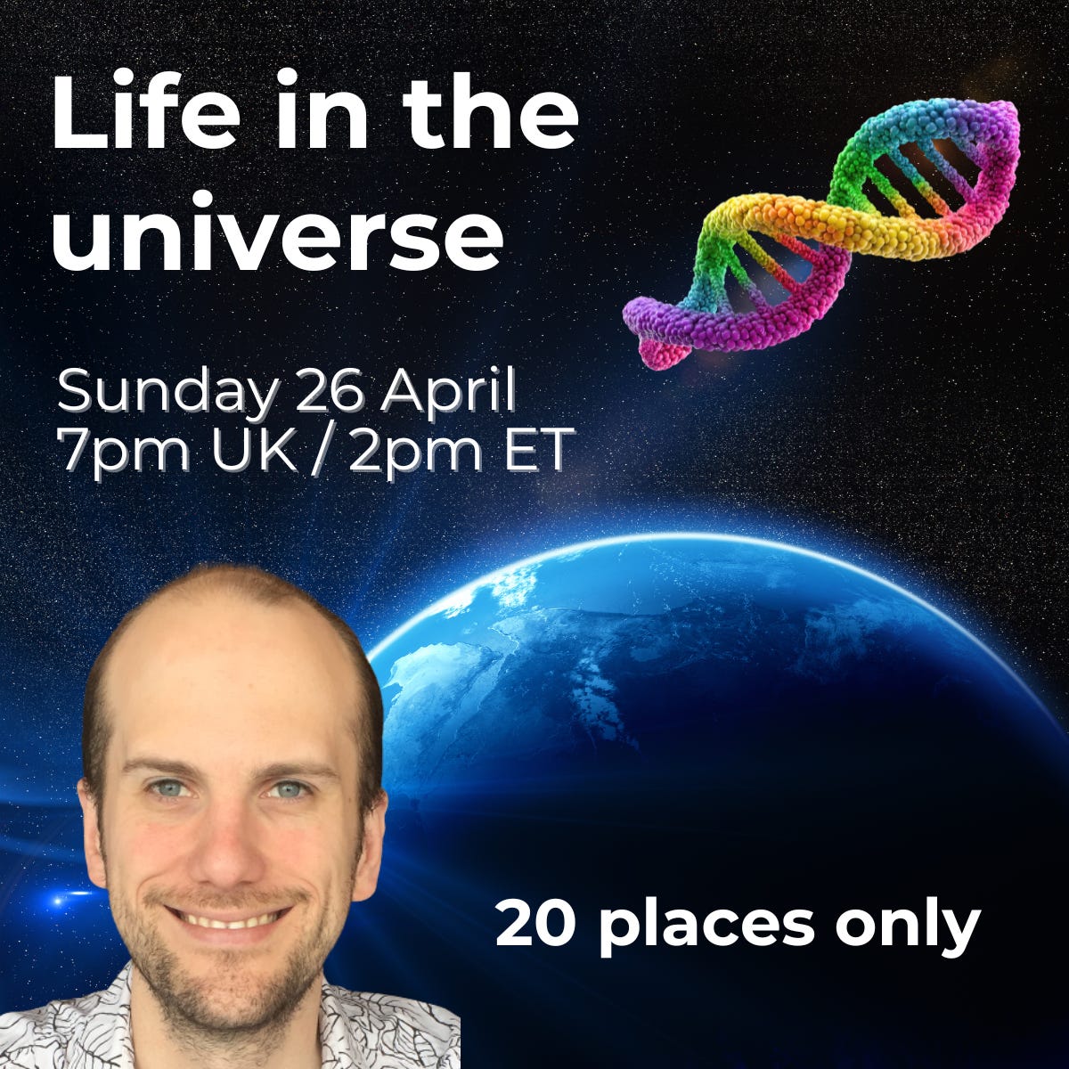 I am running a paid, 2 hour online masterclass on 26 April, exploring the cutting-edge science behind the search for life beyond Earth - from habitable planets to technological civilisations.